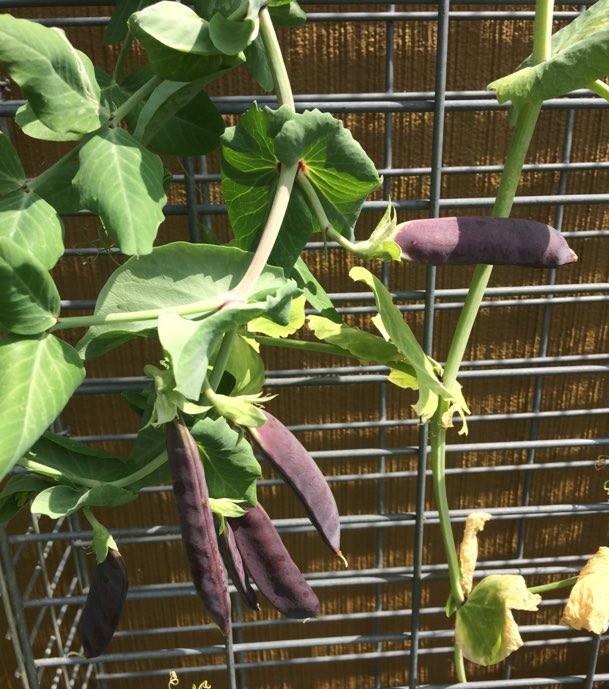 Nouveauté pour moi au potager : les petits pois à rames à Cosses violettes « Blauwschokkers ». De magnifiques fleurs qui se transforment en grosses cosses bien charnues, remplies de pois verts, fermes et savoureux.