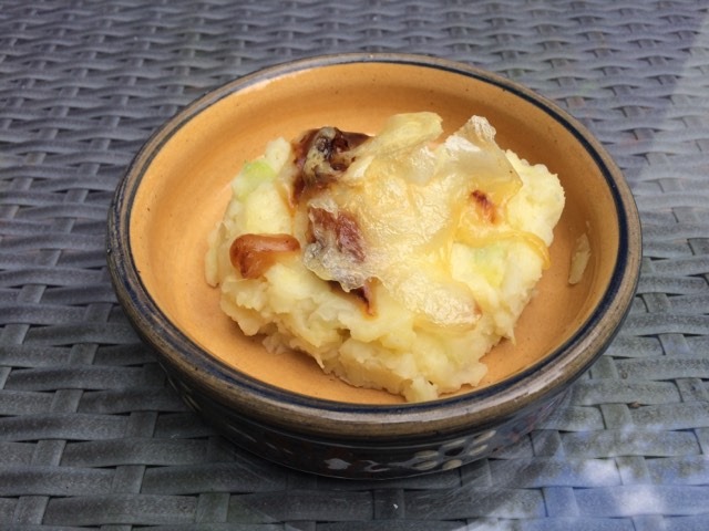 - Y ajouter : la moitié du parmesan, le beurre, sel, poivre, muscade, un trait de lait et le jaune d’œuf. Écraser le tout finement ou non selon le goût. Rajouter du lait pour gérer la consistance souhaitée.