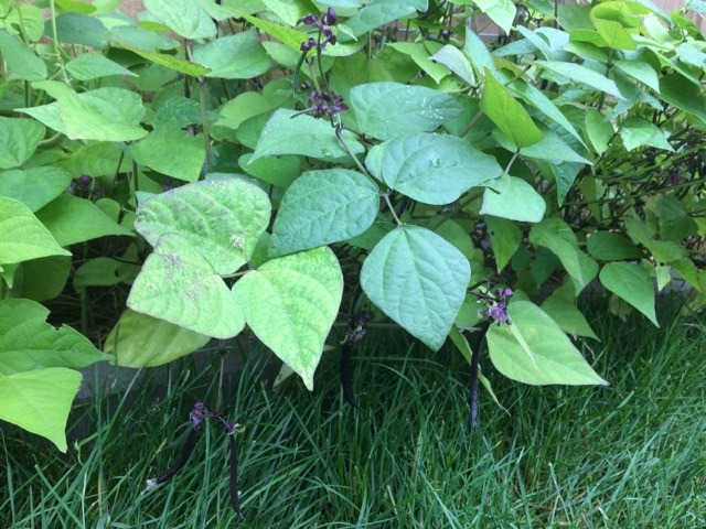Et voici les magnifiques haricots « nains mangetouts Reine des Pourpres » – leur jolie couleur disparaît à la cuisson mais non leur saveur fine. Et puis c’est tellement rigolo pour les enfants! « Maman cultive des haricots mauuuves!!!! Comme dans les Schtroumpfs? »