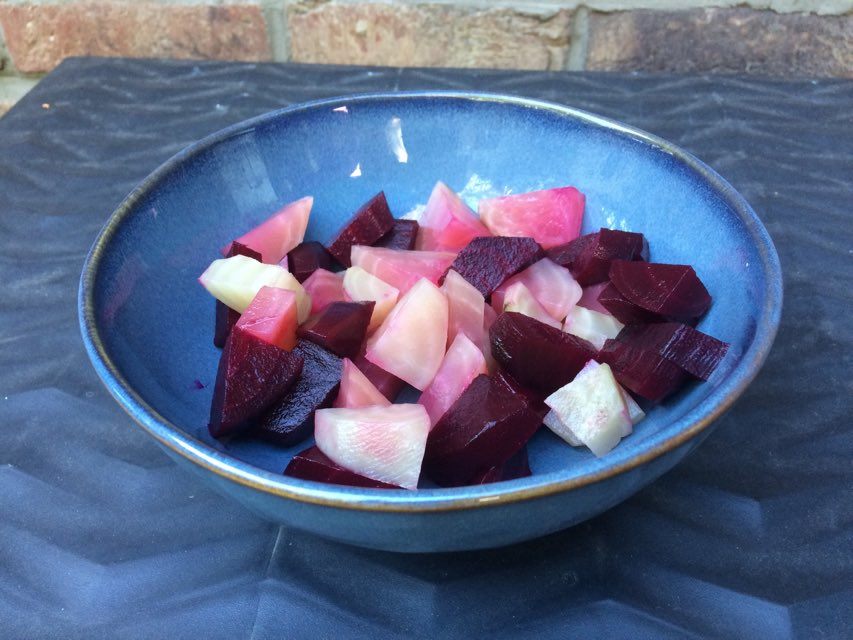 Et très bon : les saveurs très différentes de ces deux variétés étaient au rendez-vous. Doux, sucré et frais. Voilà une idée pour utiliser les betteraves du jardin, assez simplement.