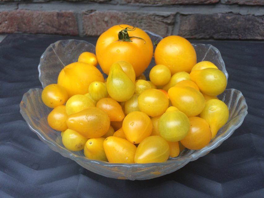 - 1 kilogrammes de tomates jaunes – ici « Cerise poire jaune » et « Téton de Wépion »