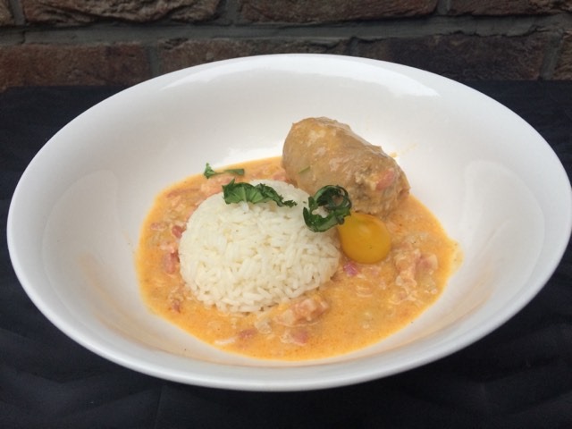 - Quand c’est prêt, ajouter la crème et juste réchauffer.