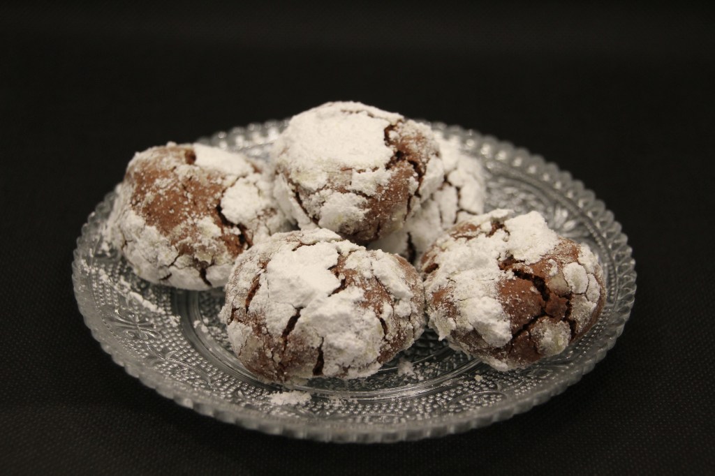 - Façonner 25 biscuits, les rouler dans du sucre glace et les placer sur un papier cuisson. Enfourner 10 minutes.