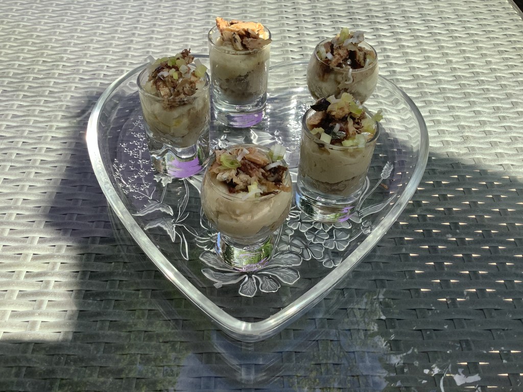 - Préparer la crème de sardines en en mixant 5 avec le beurre, sel et poivre ainsi que le whisky. Partager cette crème dans les verrines.