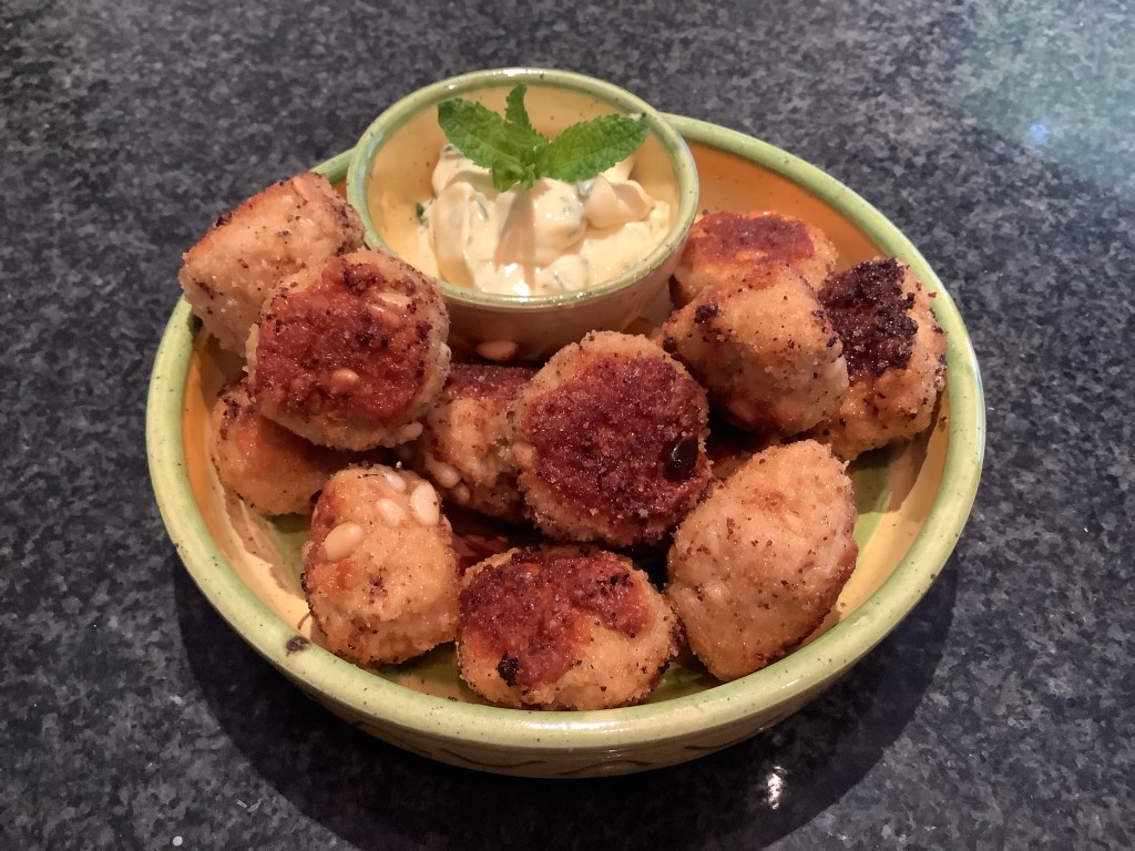 - Façonner de toutes petites boulettes taille apéro et les rouler dans une assiette contenant de la chapelure.