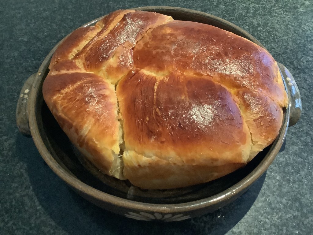 Une belle brioche bien dorée et gonflée pour se faire plaisir … juste tartinée avec du beurre salé. J’adore.