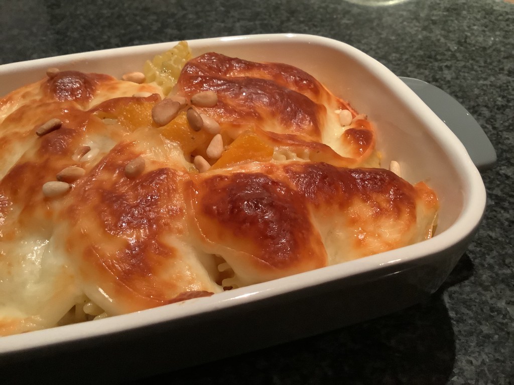 - Répartir dans 4 ramequins et surmonter de la scamorza en tranches et des pignons. Enfourner dans un four préchauffé sur grill à 180 degrés pendant 20 minutes environ. Servir avec une bonne salade.