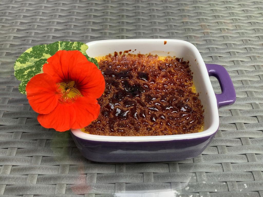Au moment de servir, saupoudrer de sucre ou de cassonade et griller au chalumeau de cuisine. Servir de suite.