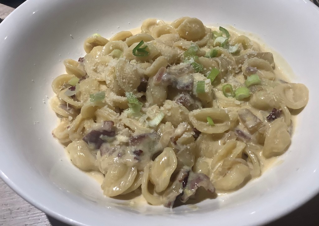 Pour dire toute la vérité, je voulais faire des pâtes carbonara version belge en mode « étudiants en semaine» et je n’avais pas de lardons …