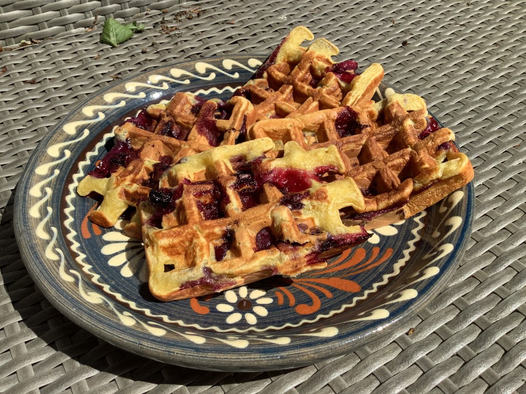 De bonnes gaufres pour les petits, avec les œufs des cocottes et les fruits du jardin.