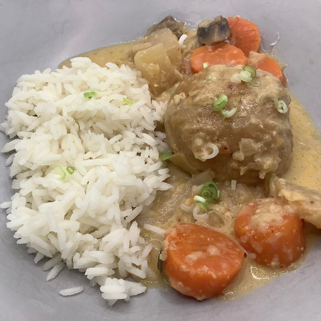 - Servir avec du riz Basmati et la cébette émincée.