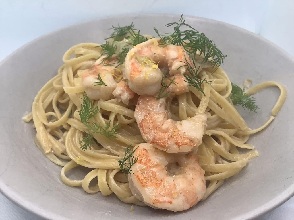 Pendant ce temps, les scampis du congélateur ( dénervés à l’avance) sont passés au grill bien chaud, ensuite décortiqués et ajoutés dans la sauce juste pour les réchauffer. Tout mélanger avec les pâtes cuites.