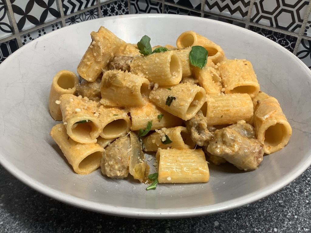- Terminer la sauce – Saler, poivrer, pimenter. Verser la crème et le parmesan.