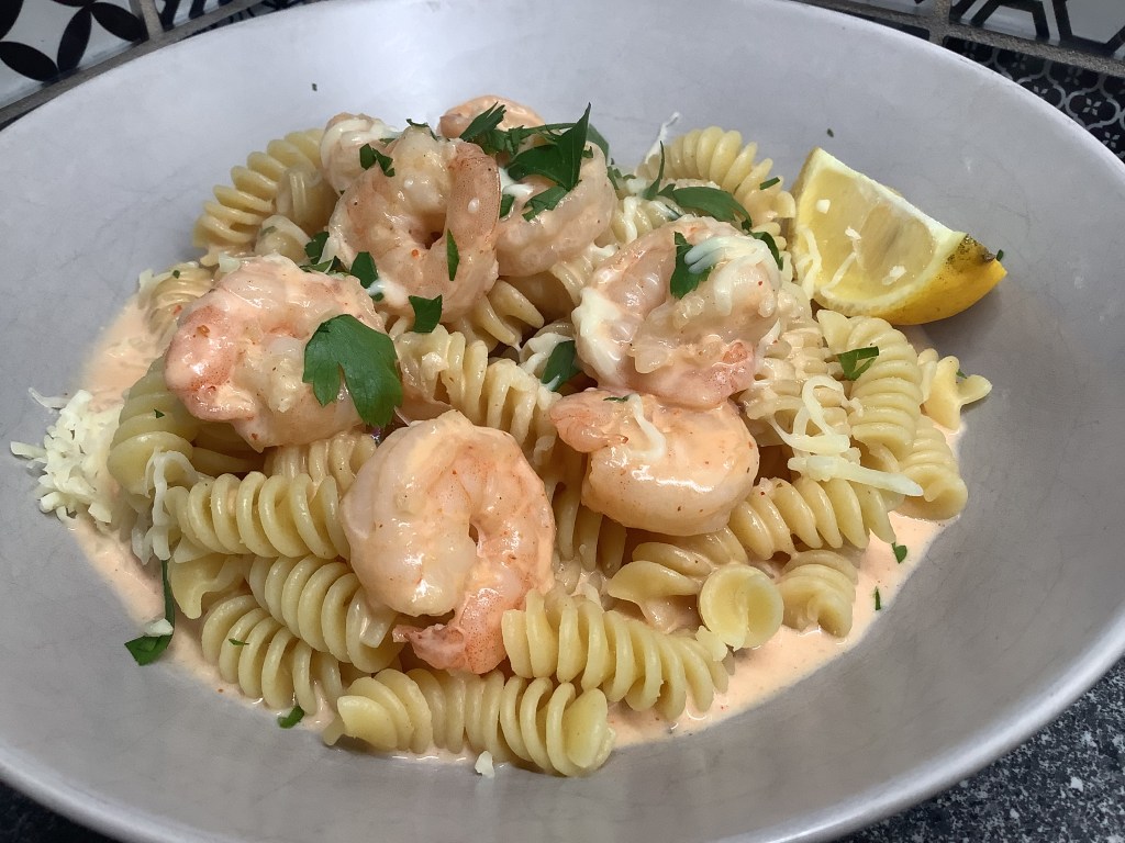 Ajouter les scampis et laisser cuire un peu. Flamber au whisky. - Saler, poivrer. Ajouter du piment, la crème et le concentré de tomate.