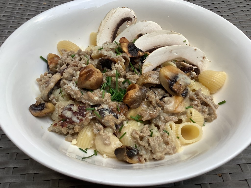 - Servir sur des assiettes chaudes, avec la ciboulette émincée, les champignons crus et un peu de parmesan.