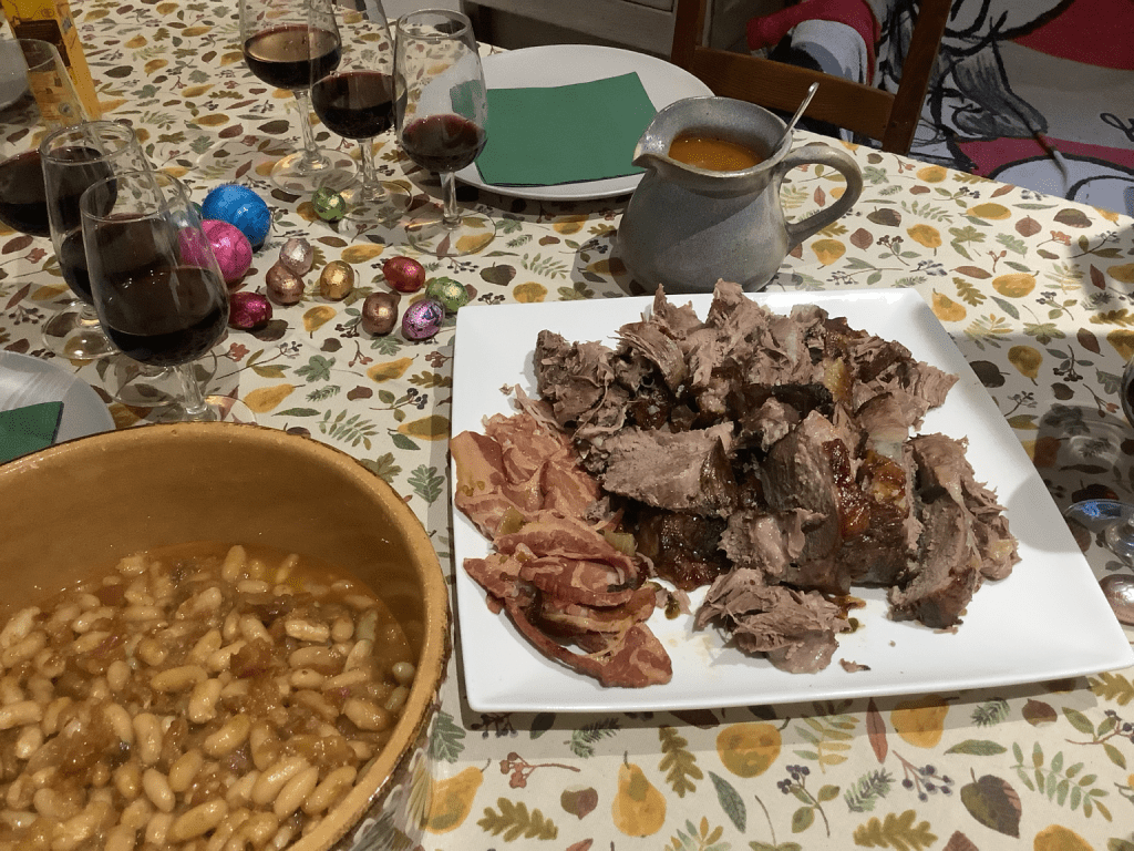 - Au moment de manger, montrer le résultat d’abord ( comme la dinde de Noel). Découper le gigot. Le disposer sur une assiette chaude, il peut attendre ainsi au four.