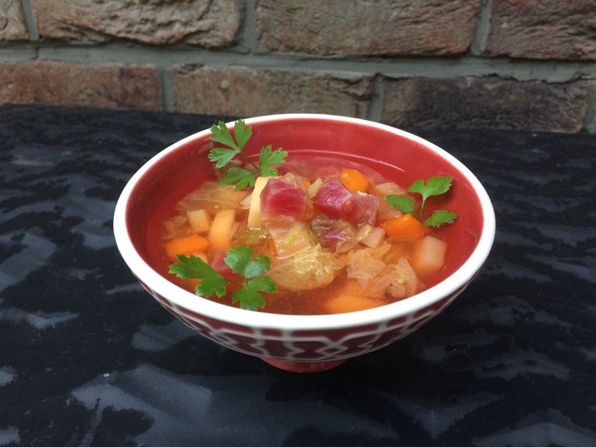 Goûter pour rectifier l’assaisonnement. Même si vous réchauffer ce potage, ne plus le faire bouillir. - Pour l’apéro du nouvel an 2024, je dresse le potage en verrines. Surmonter de poudre de chorizo grillé ( passer des tranches fines de chorizo au four 10 minutes, laisser refroidir et le mixer) et de ciboulette ciselée.