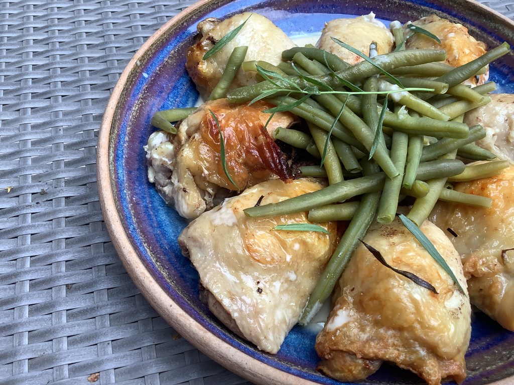 - Sortir le poulet de la cocotte et le replacer au four dans un petit plat position grill.